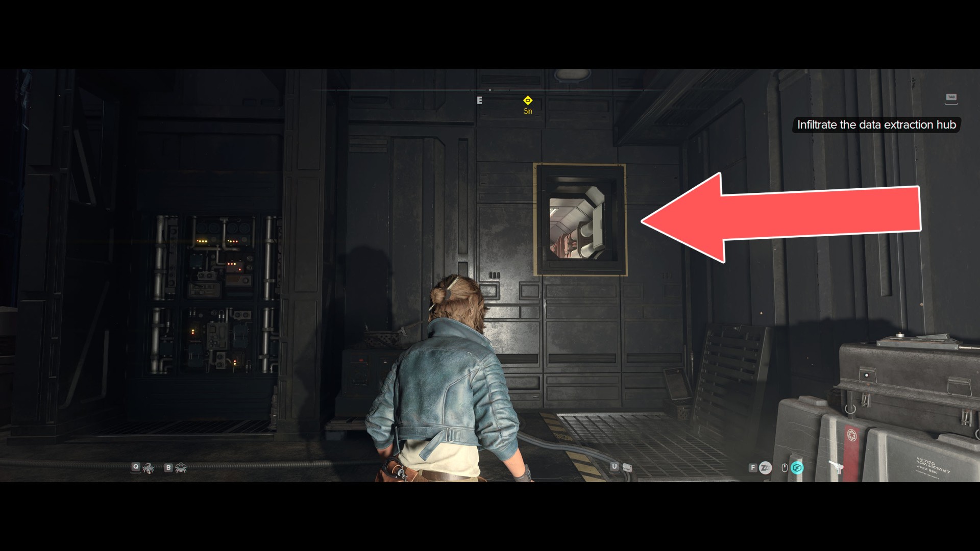 Go through the ventilation shaft that you unlocked using the terminal.