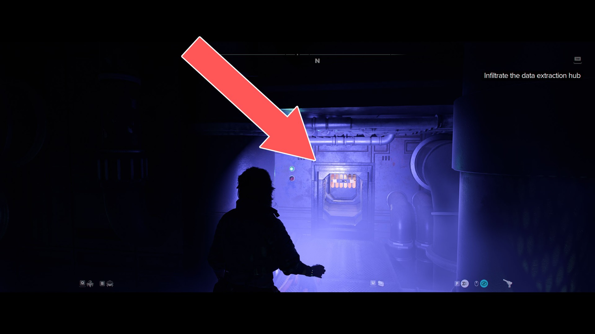 Proceed to the north end of the data extraction hub and take a turbolift.