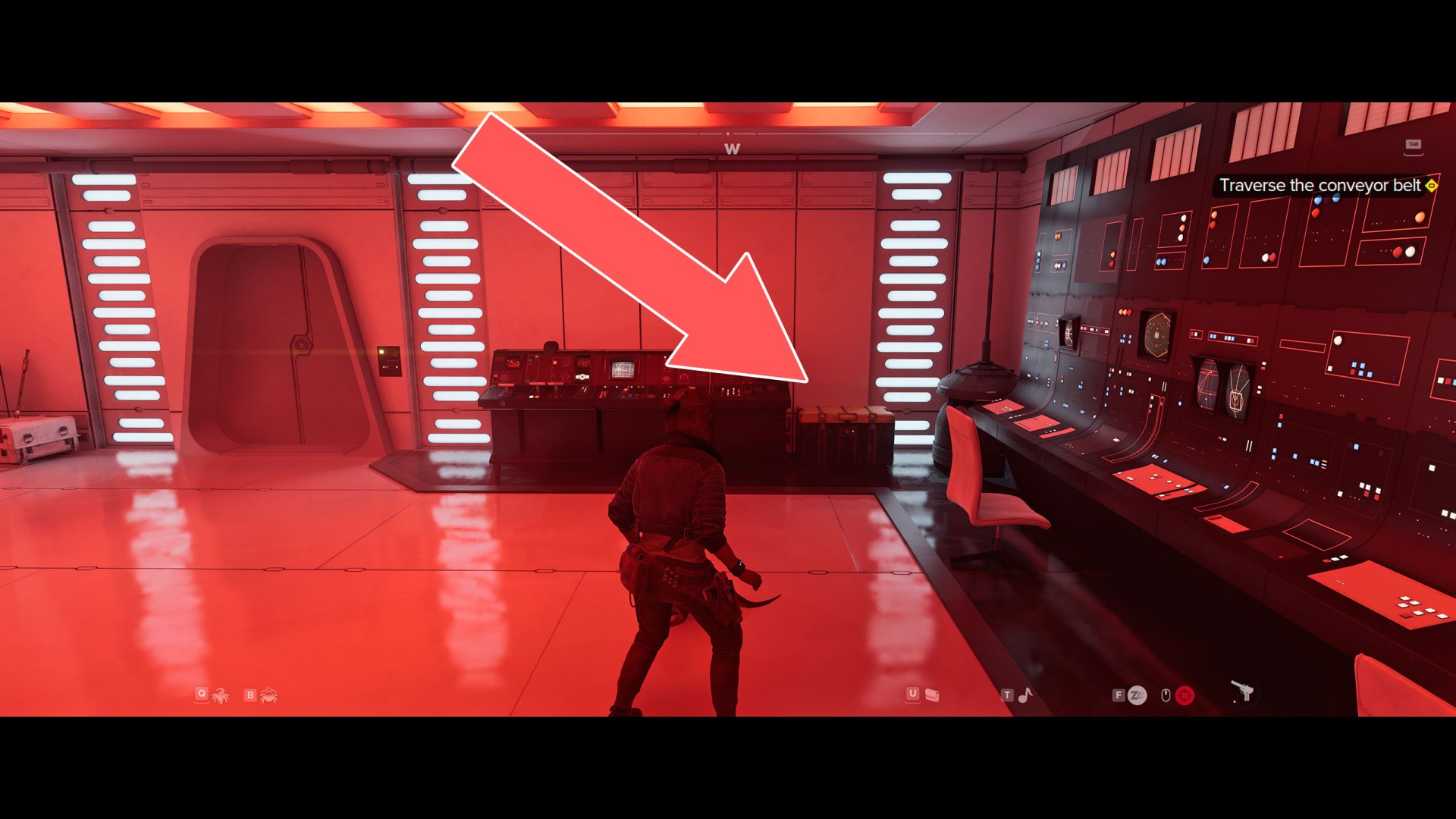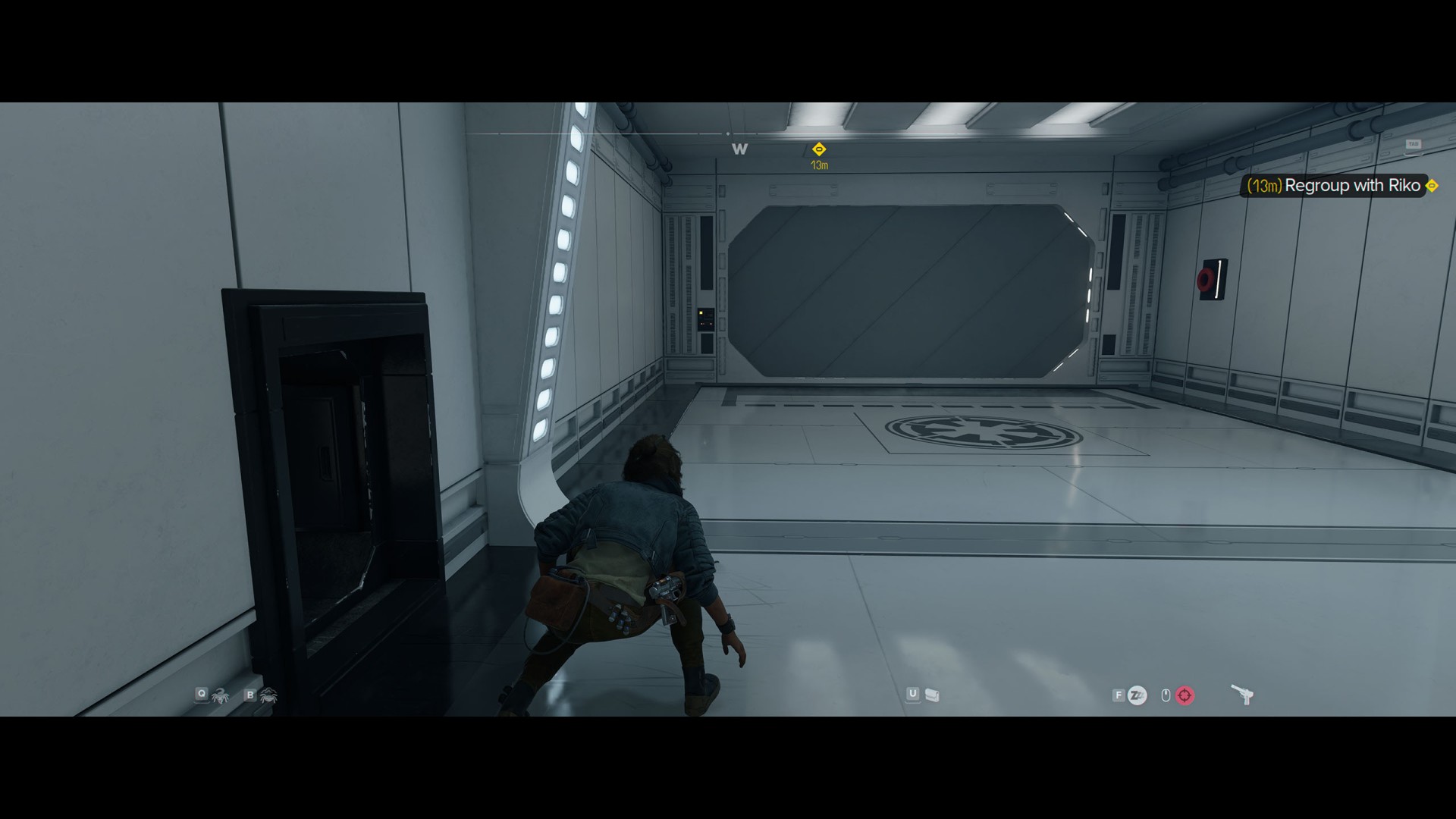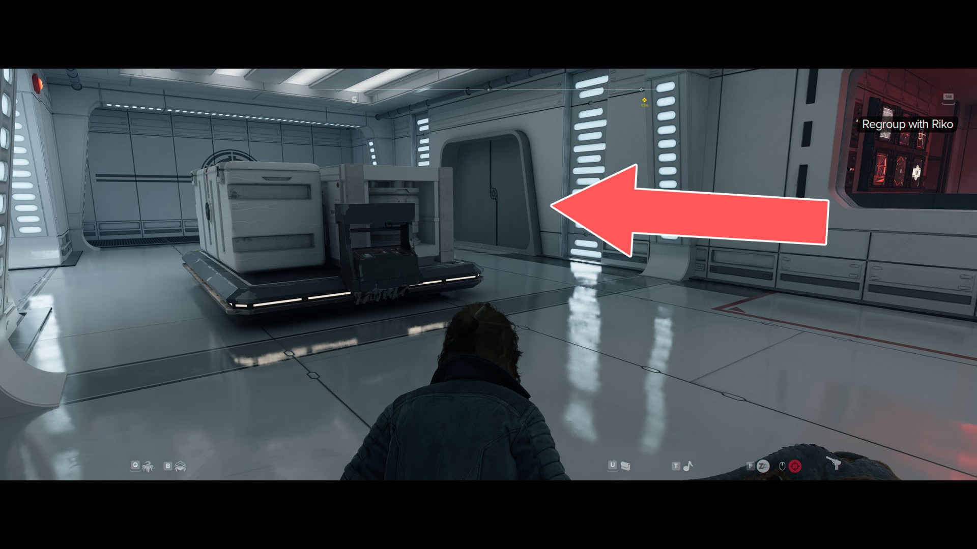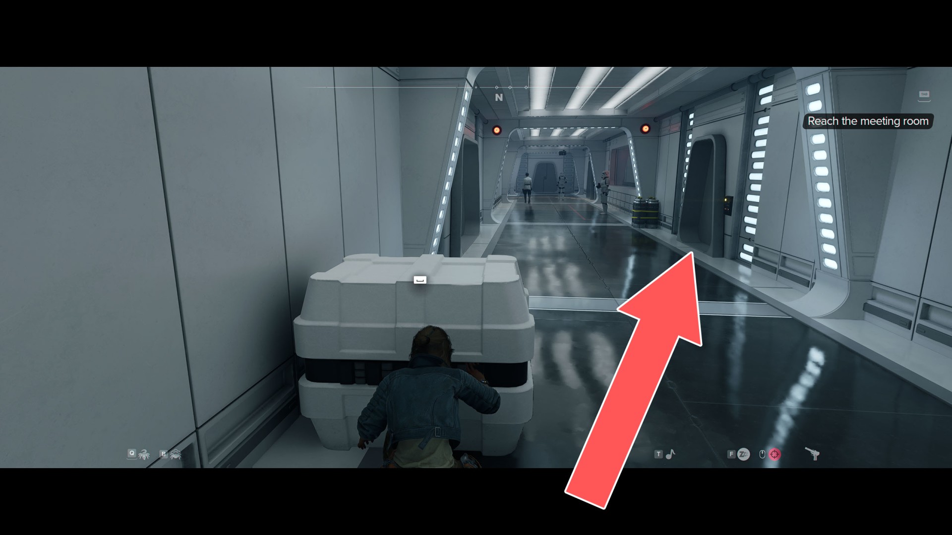 Taking care to avoid the stormtrooper patrolling this part of the premises, proceed to the other side of the hallway.