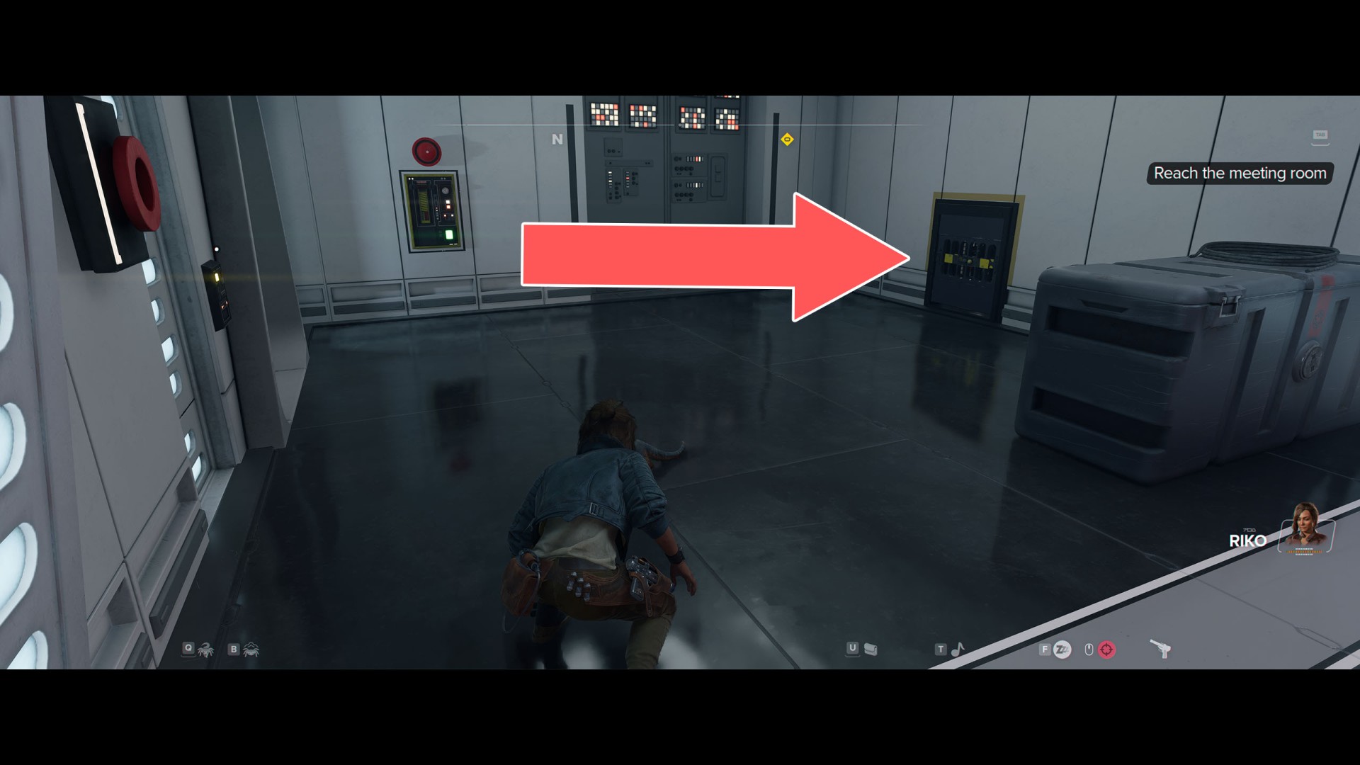 Once inside the Derosha Six station, follow Riko into the hallway ahead of you. There, Riko will open the door to the control room.