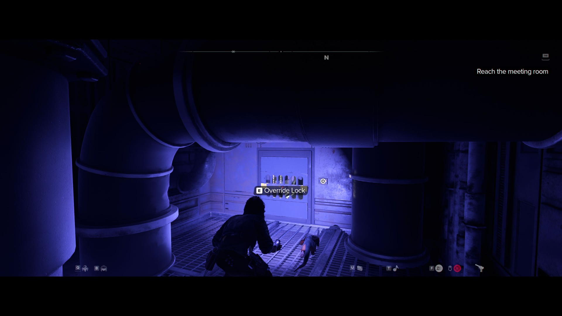 When you exit the ventilation shaft, proceed through the door on your left.