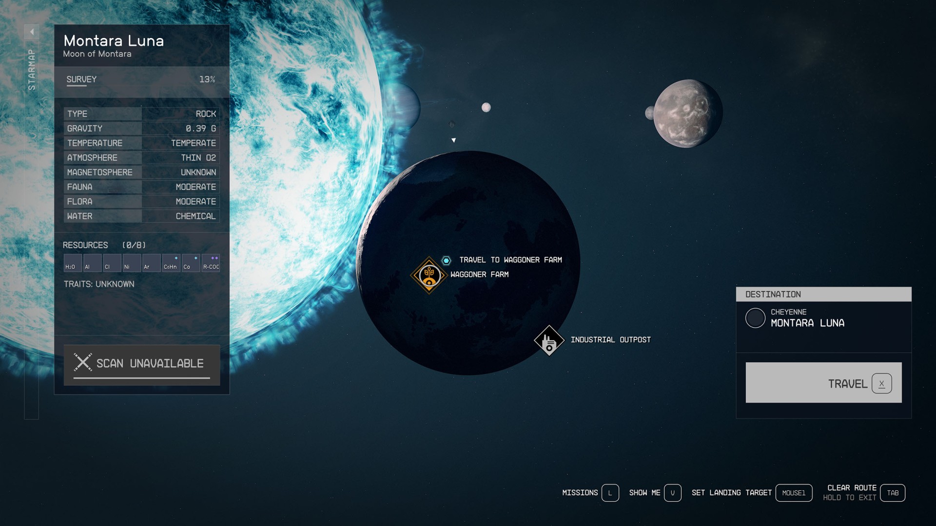 Travel to the moon of the planet Montara and land at the Waggoner Farm.
