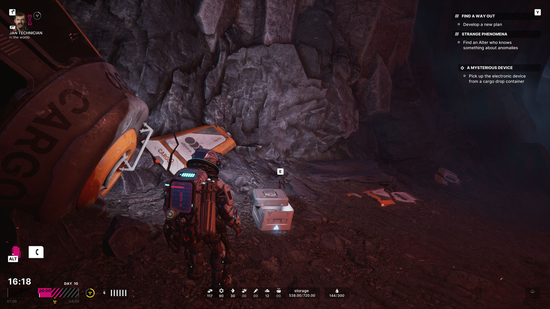 Next to a crashed cargo pod. When you approach it, you will receive a new task - "A Mysterious Device".