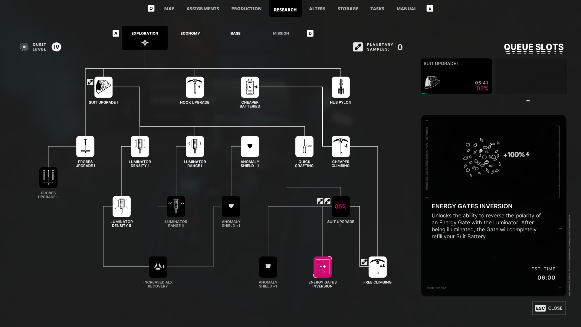 You can always bypass energy barrier by finding alternate path. Energy barriers cannot be permanently destroyed, unlike other anomalies, but their effect can be reversed with the research. At Qubit level 4, you can research the "Energy Gates Inversion" technology. This allows you to use the Luminator to locate and destroy two cores within an Energy Gate. Once destroyed, passing through the gate recharges your suit's battery instead of draining it.