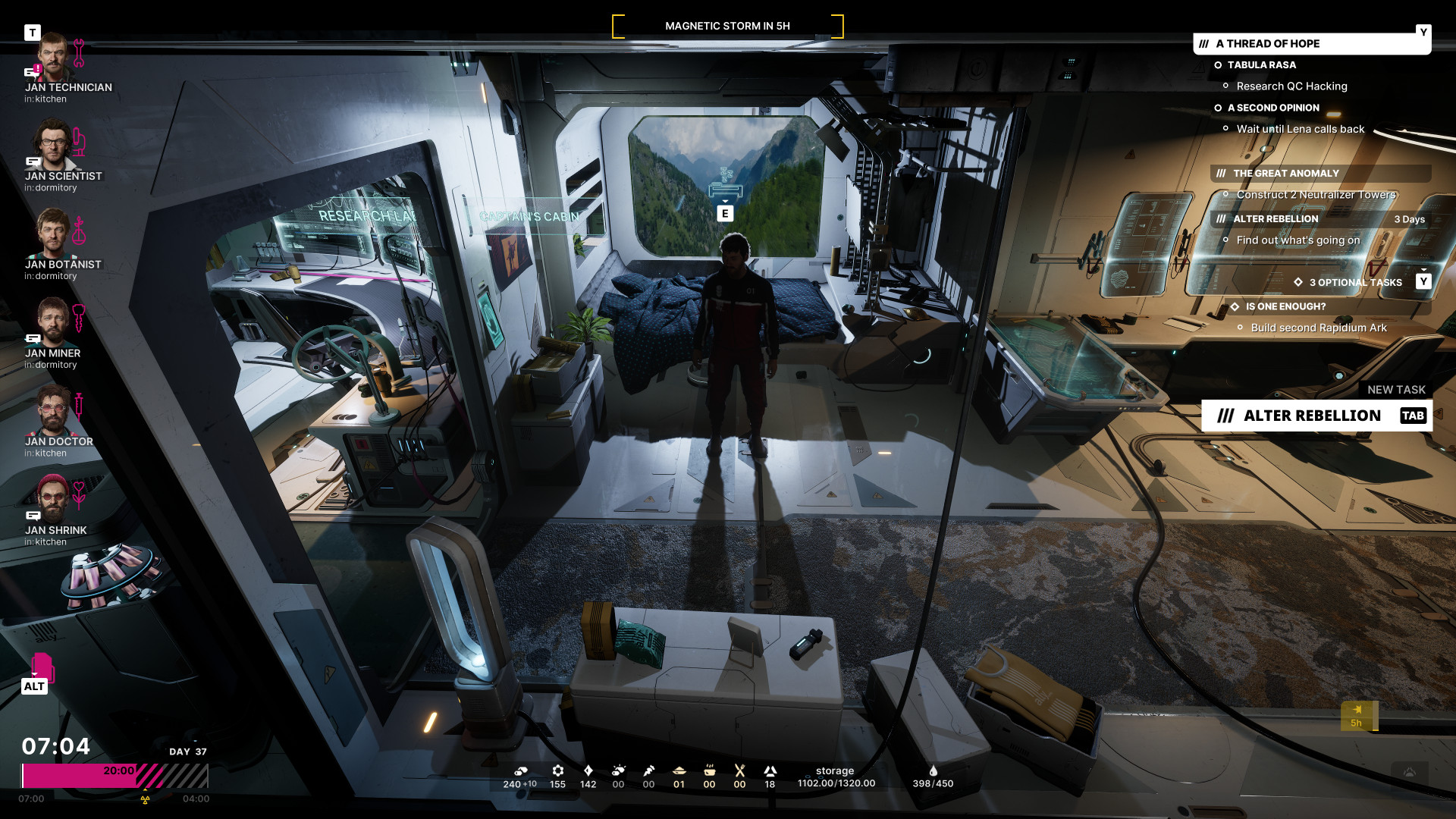 In The Alters, Tasks are objectives tracked in the Task Log within the game menu, split into Main Tasks and Side Tasks. Main Tasks are essential objectives that advance the core story and survival goals across the game's chapters, focusing on resource gathering, crafting, and base management to progress the narrative. Side Tasks are optional, often tied to specific Alters and their unique skills or needs, aimed at boosting morale or addressing personal requests to maintain team stability.
