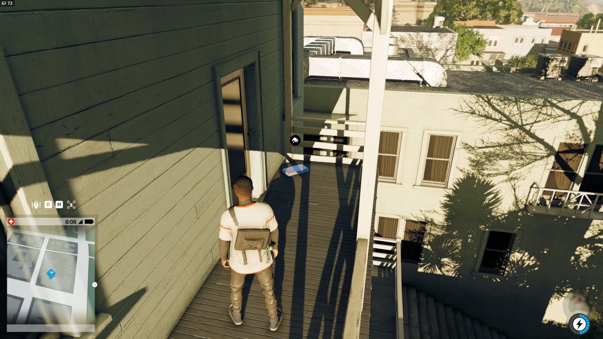 Show the mapThe package containing Cap Crossroads is located on the balcony of the building.