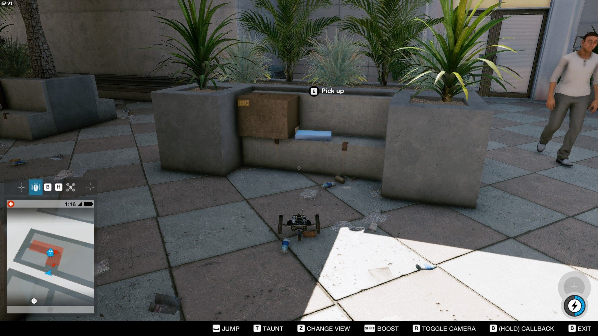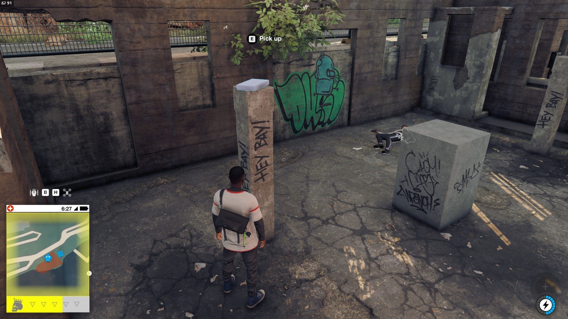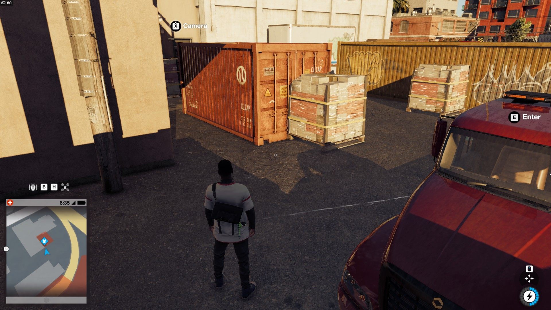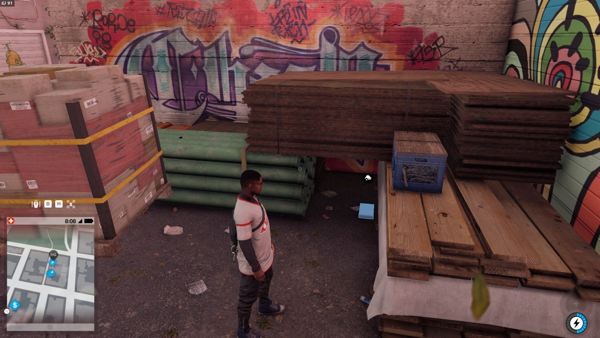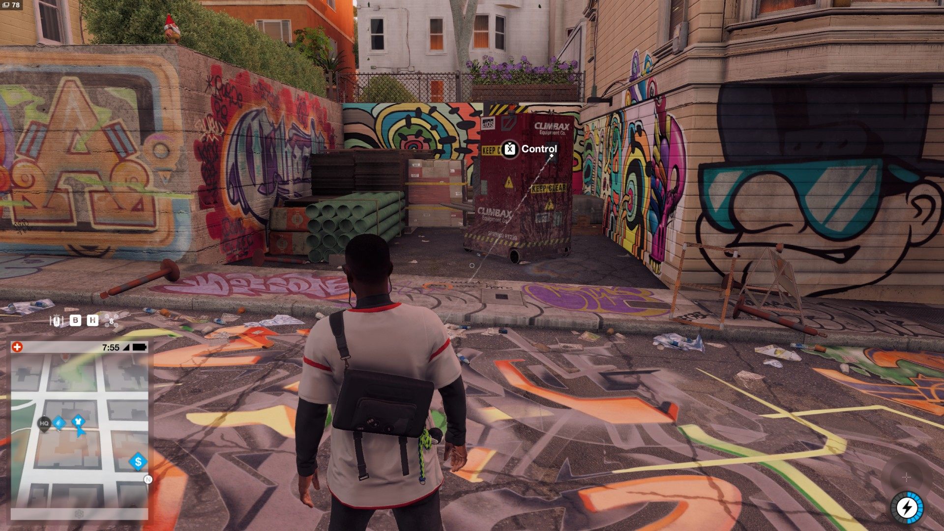 Show the mapThe package containing Cap Oakland can be found in the alley next to the DedSec HQ building.