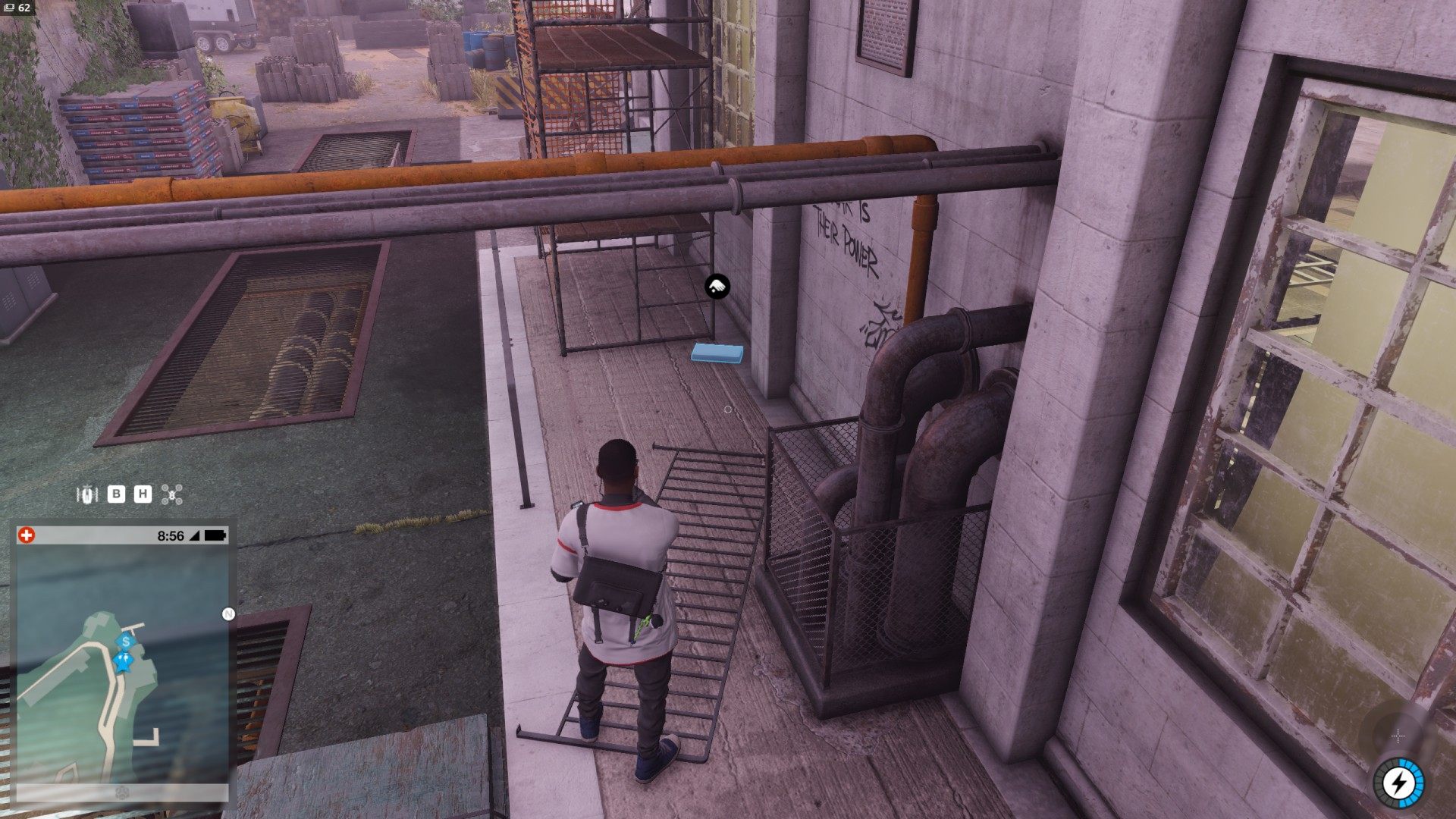 Show the mapThe package containing Castro Mask lies on the ground, next to the scaffolding.