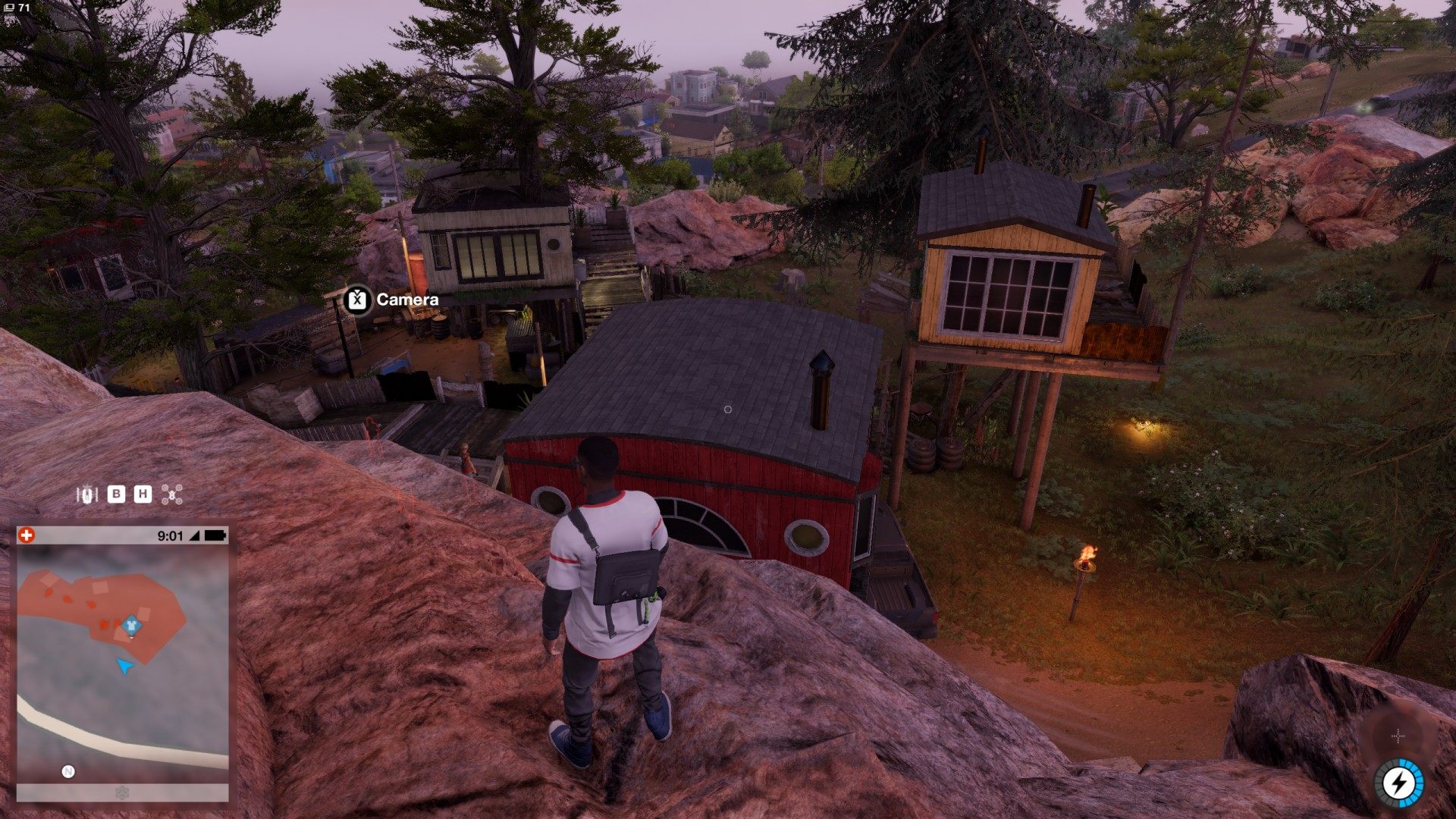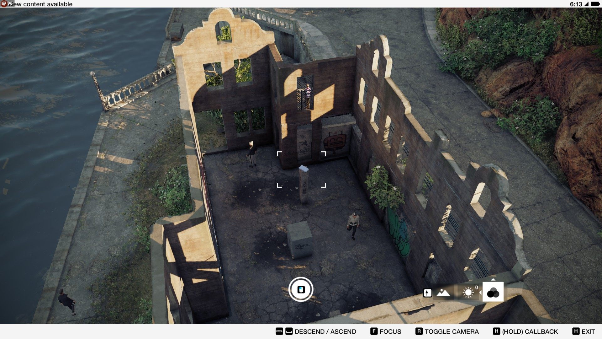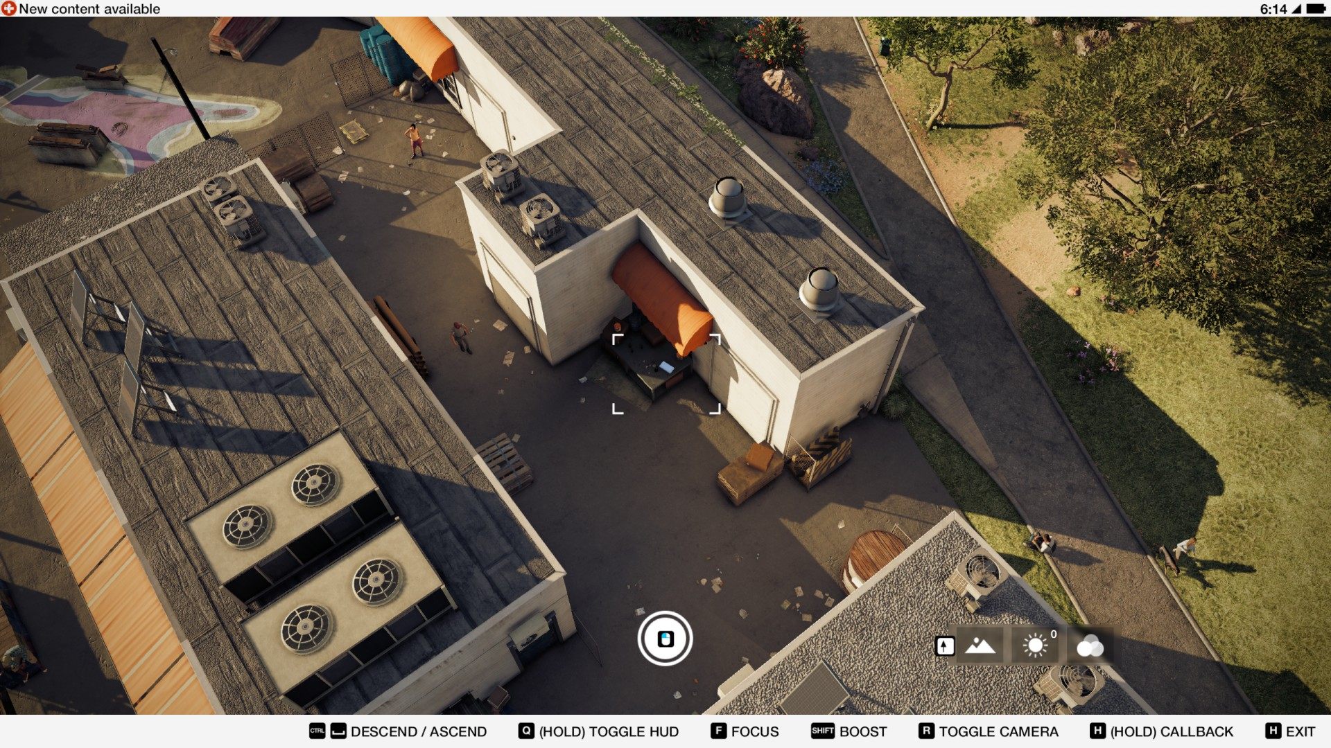 To get to the terrace you need to first find the lift hanging on the south side of the building and use it to get on top.