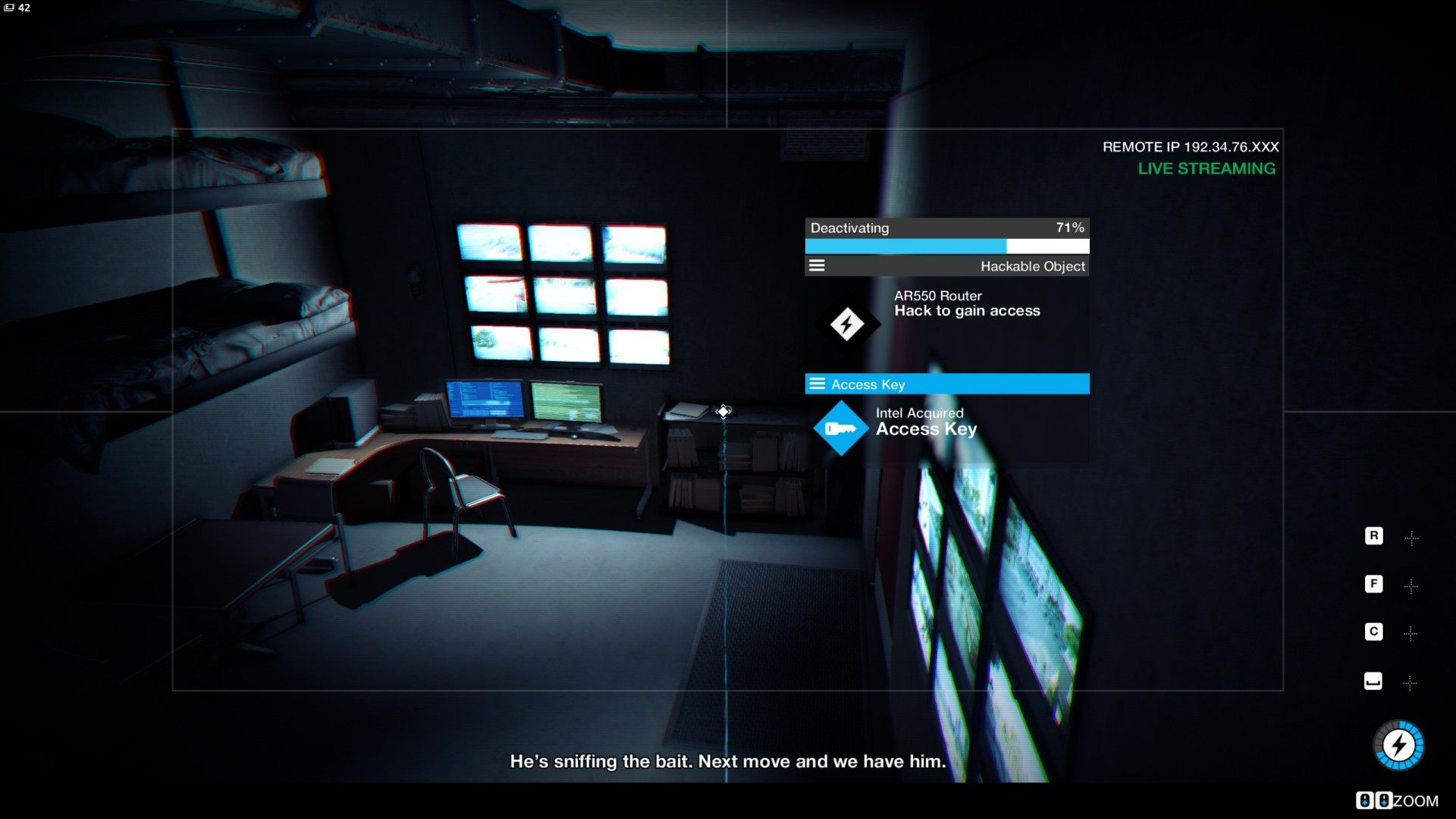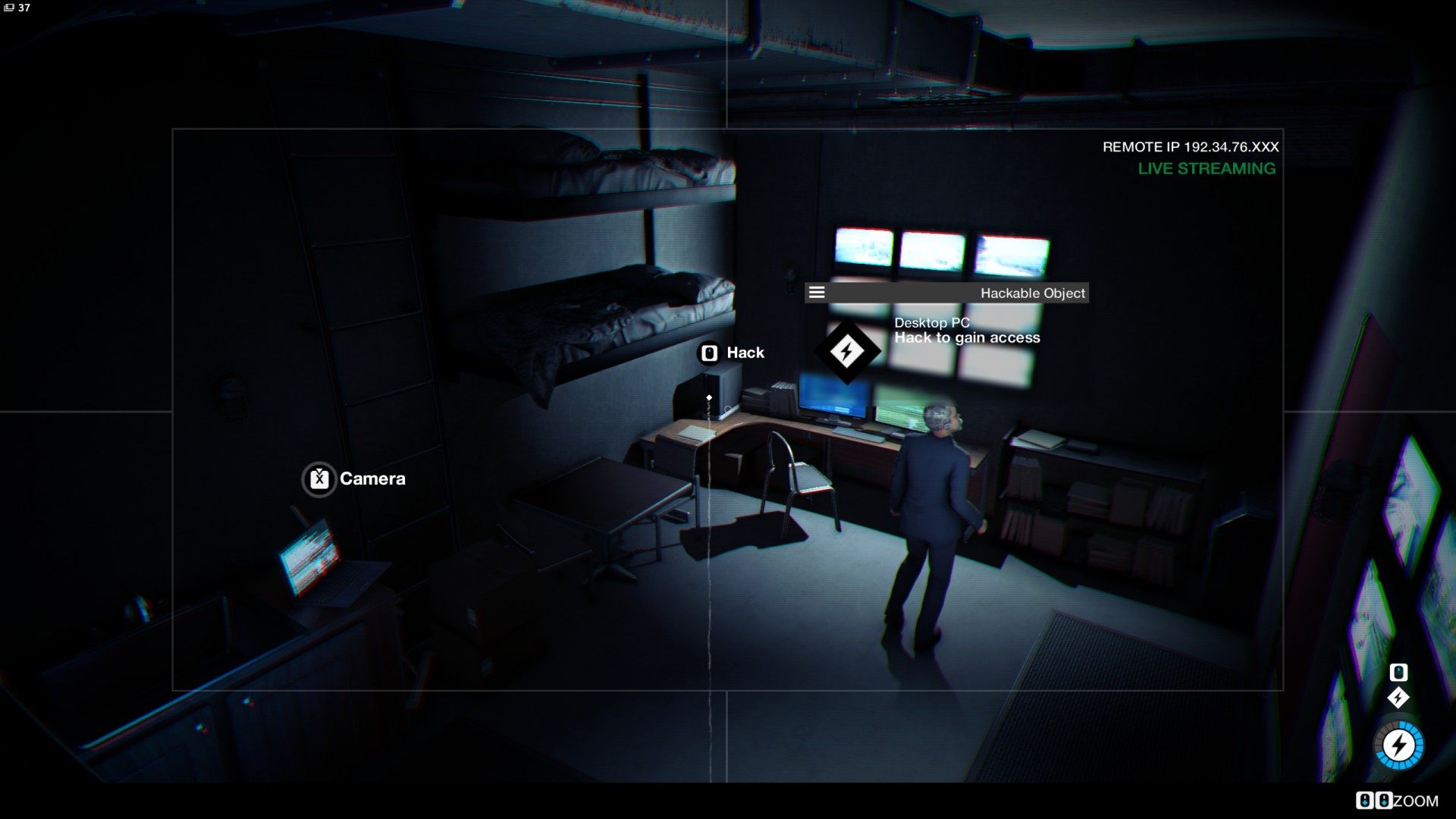 Switch between cameras until you will be able to hack the video surveillance system panel.