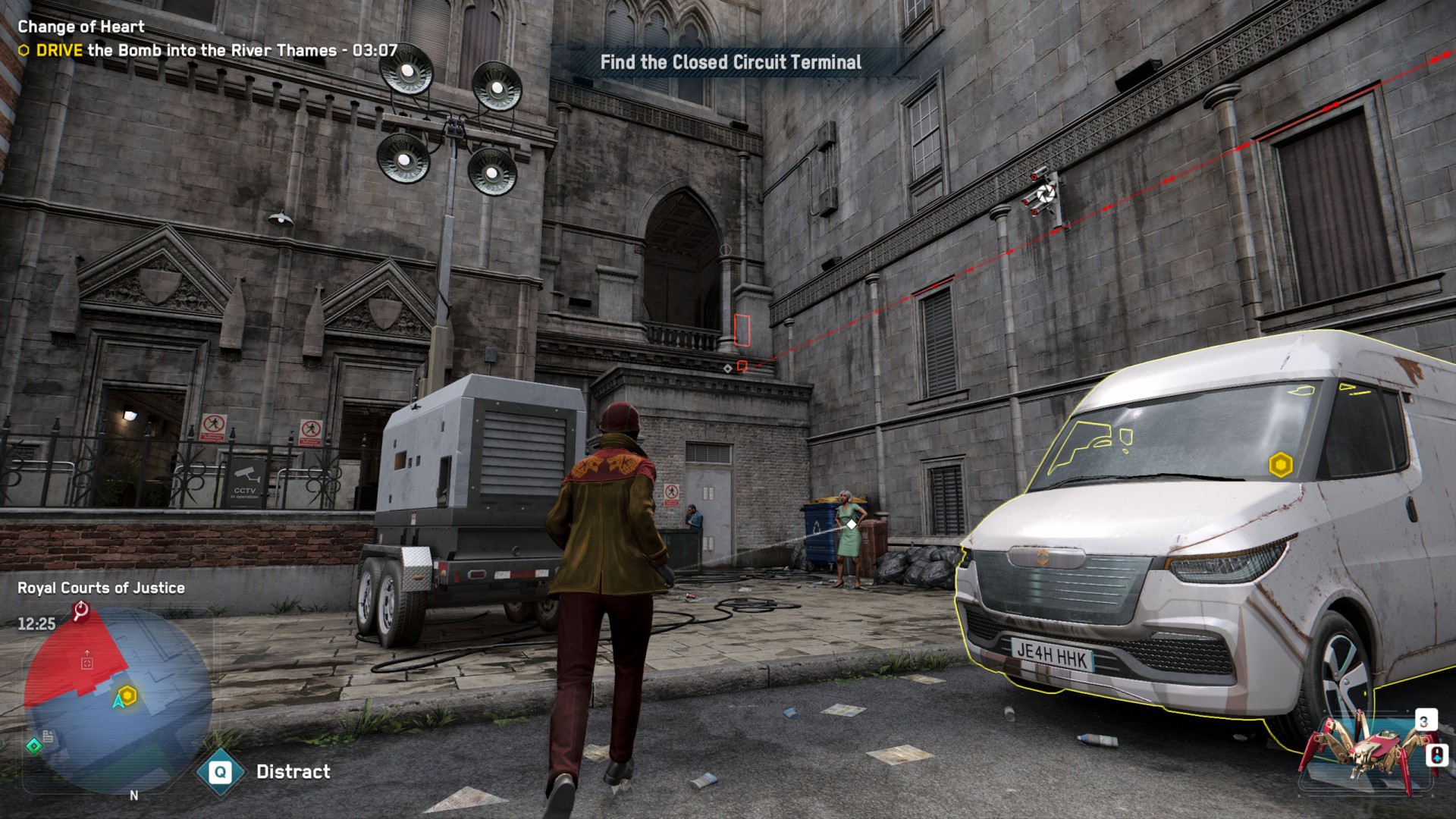 DedSec is on the trail of an extremist operating within London. According to one of her former followers, the extremist has parked a vehicle armed with explosives outside a major London landmark. Get to the Royal Courts of Justice and find the vehicle before it explodes.