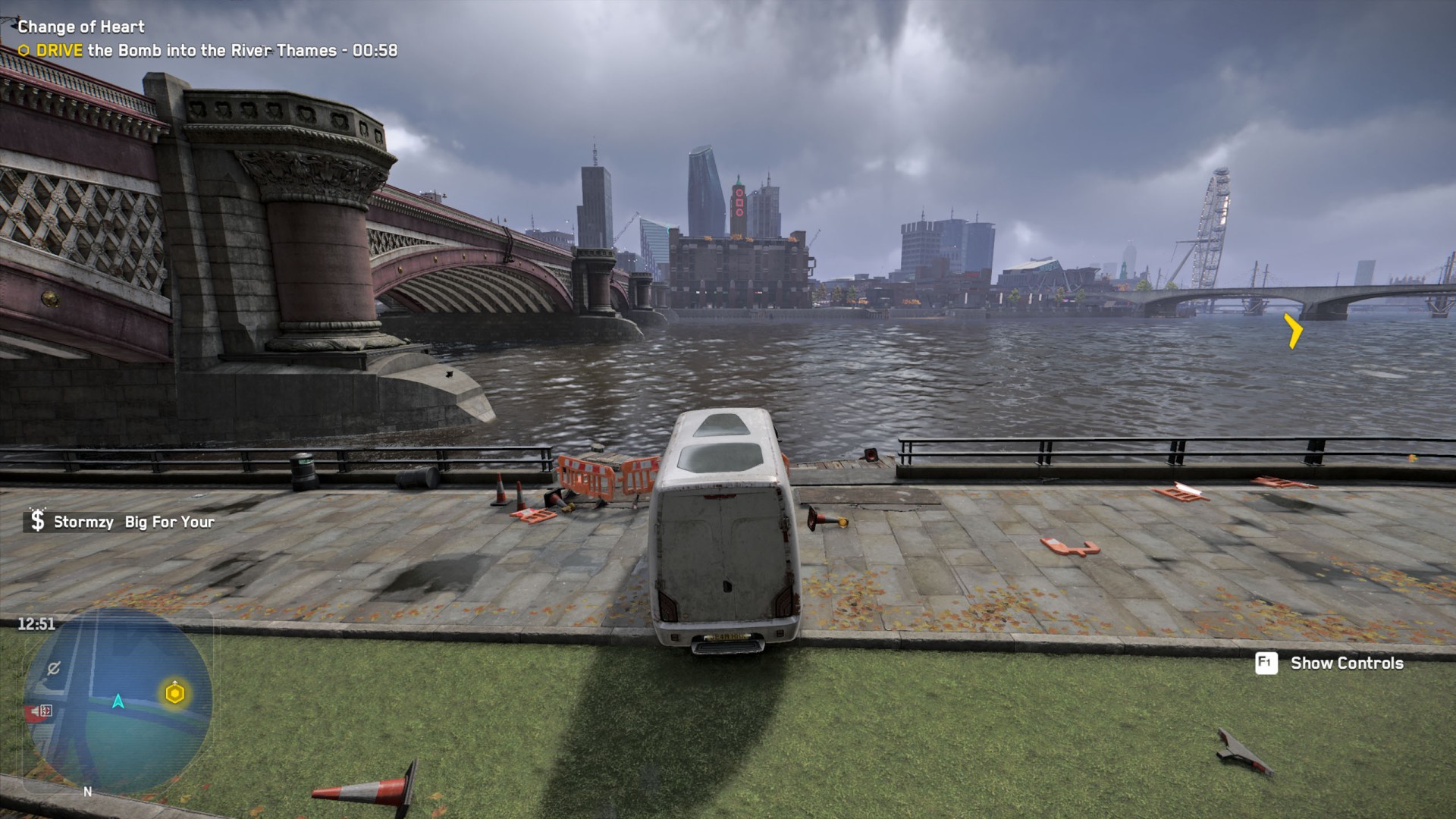 DedSec is on the trail of an extremist operating within London. She has parked a vehicle full of explosives outside the Royal Courts of Justice, and not even DedSec can stop it from exploding. Drive the vehicle into the Thames and save the city from another bombing.