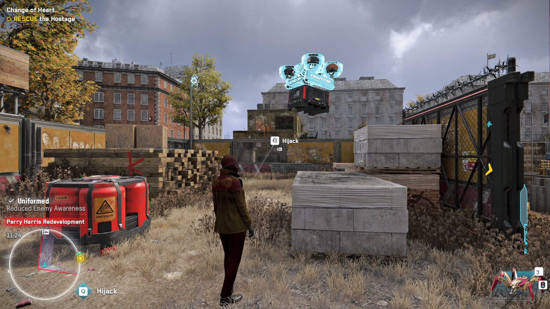 Get to the Perry Harris Group Redevelopment Project and rescue the hostage.