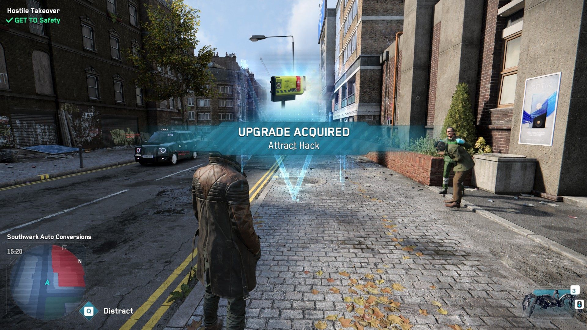Once the download is complete, switch back to Aiden and run to a safe distance. This mission will end and you will be rewarded - Attract Hack (Lure enemies toward a hacked explosive trap).