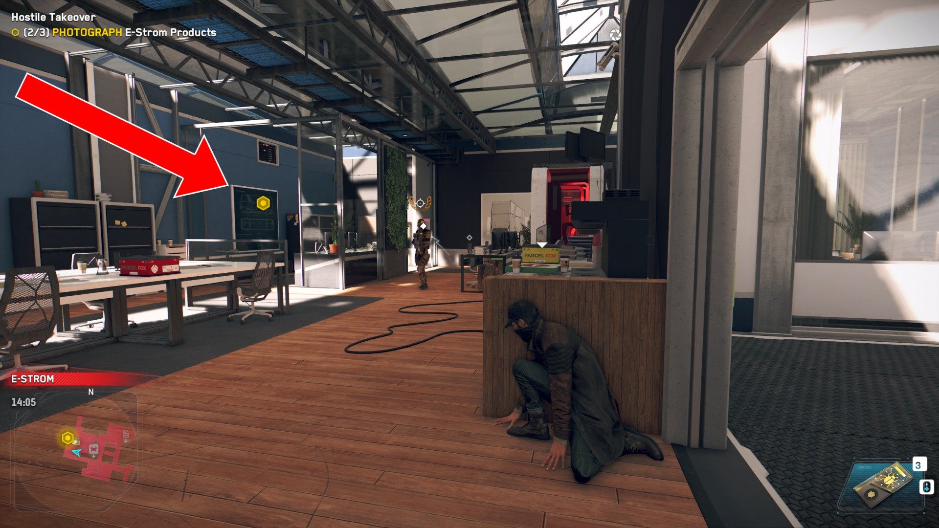 Get rid of the guard patrolling the room you will enter and photograph the last target.