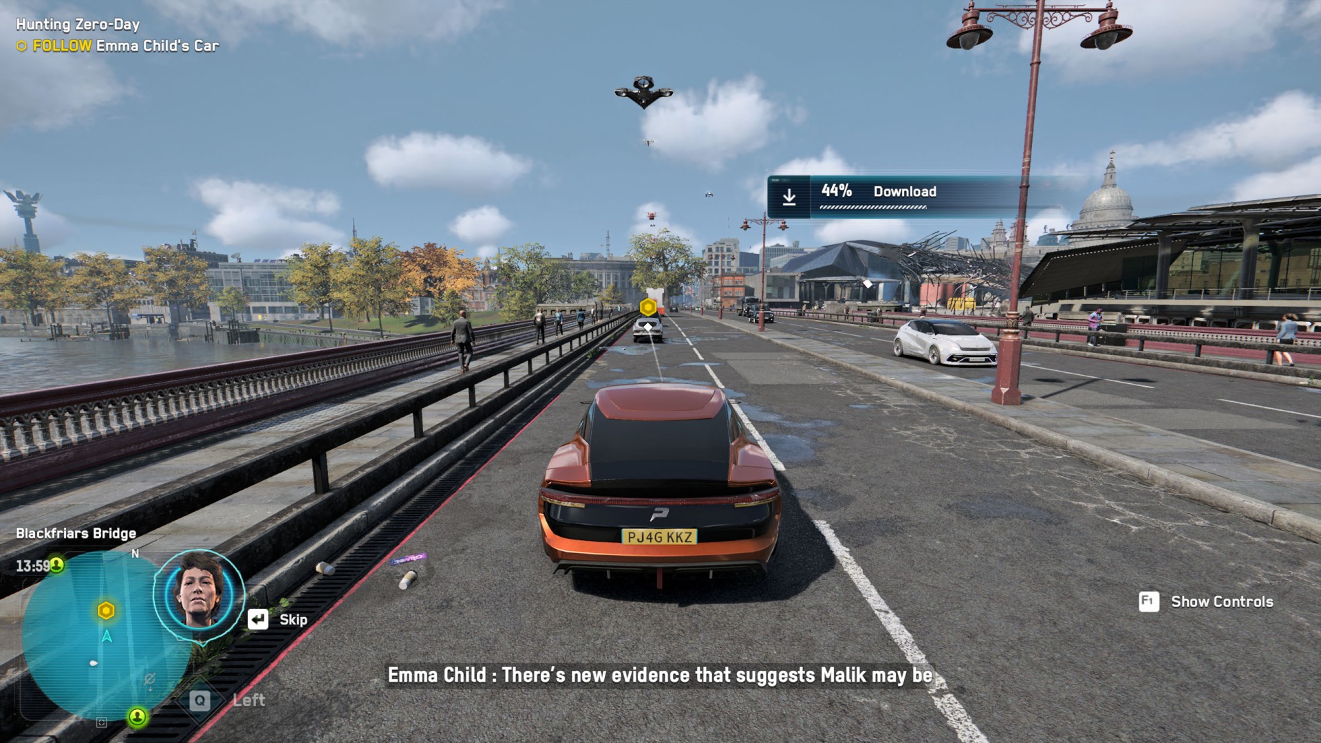DedSec might have discovered the identity of Zero-Day's leader: SIRS' counterterrorism director, Emma Child. She's currently driving away in a specialized SIRS vehicle. Get close to her and hack her car's comm to gather more evidence on Zero-Day and clear DedSec's name.