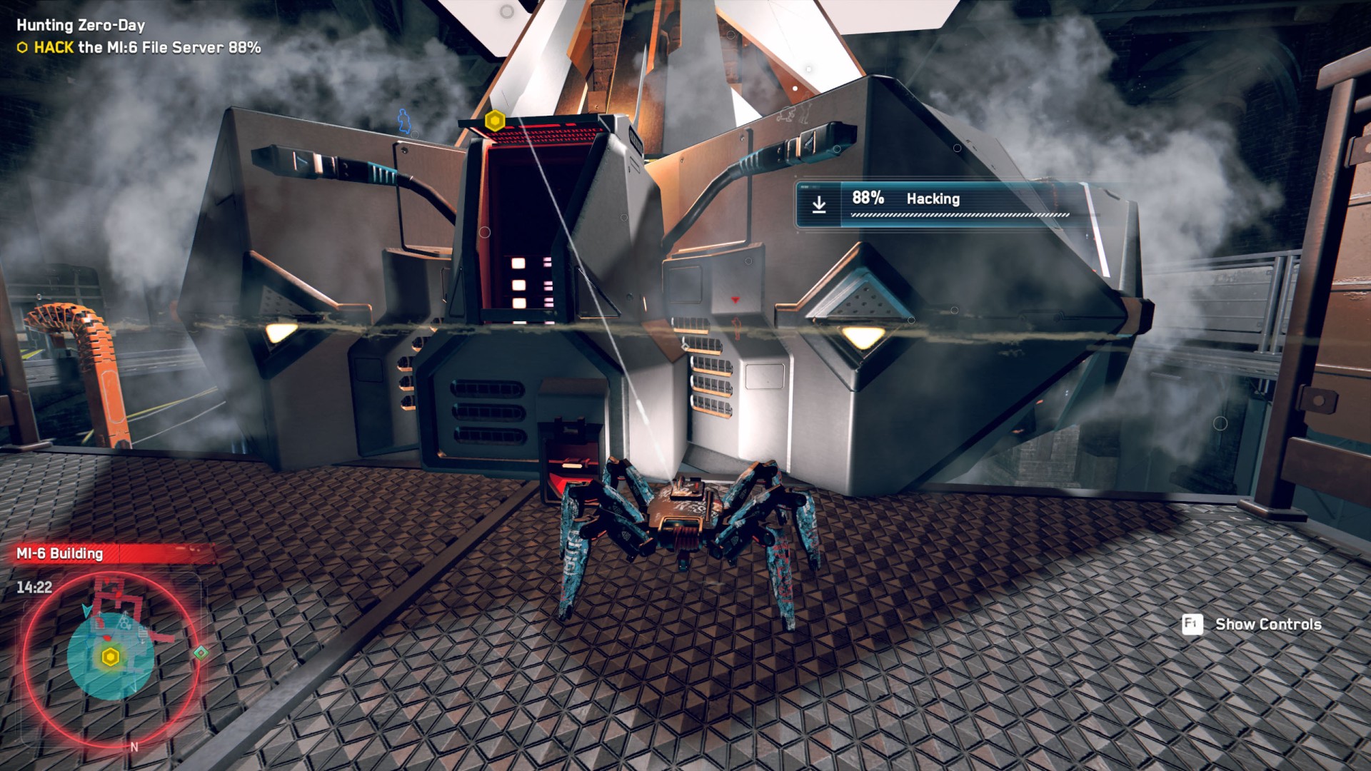 Note: If you use a spiderbot, remember that the moment you start downloading data your main character can also be detected by the guards and can be attacked.