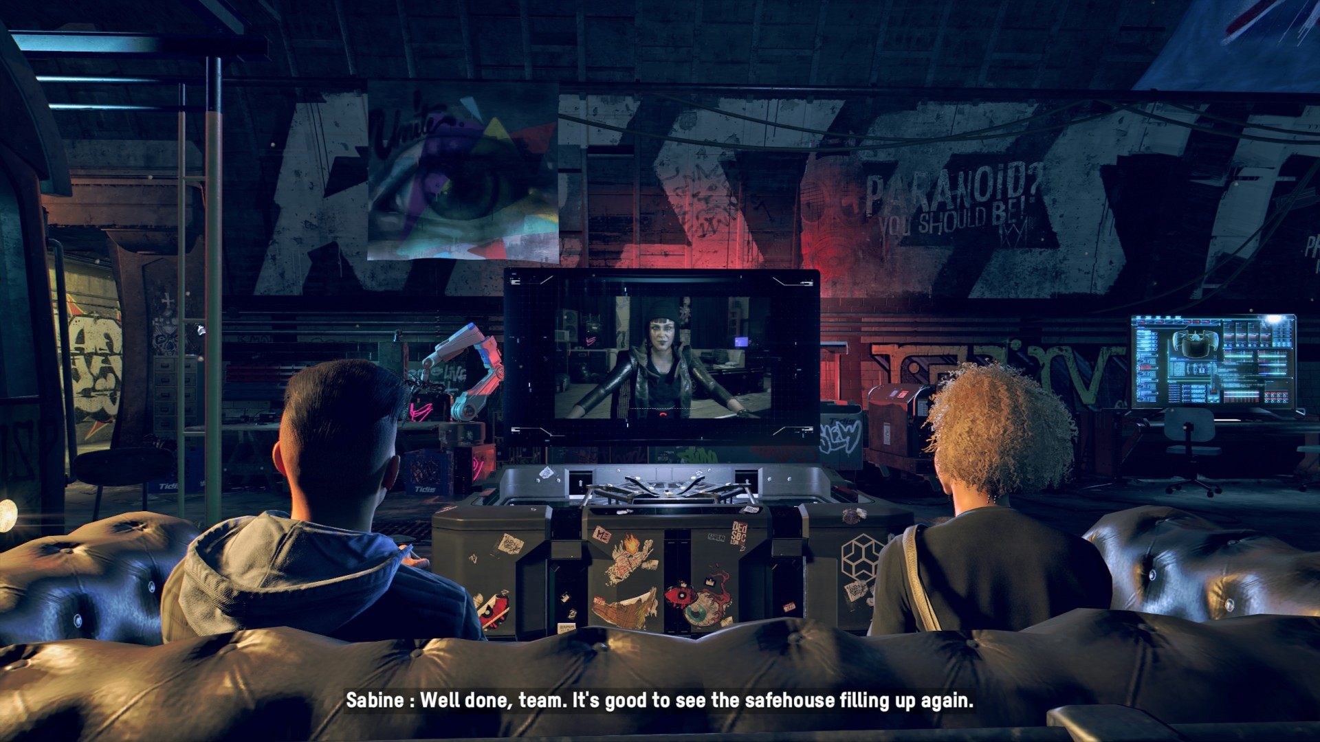 The AR Reconstruction heist was a success. Now, Sabine wants to have a word with the new team. Return to the safehouse for a briefing.