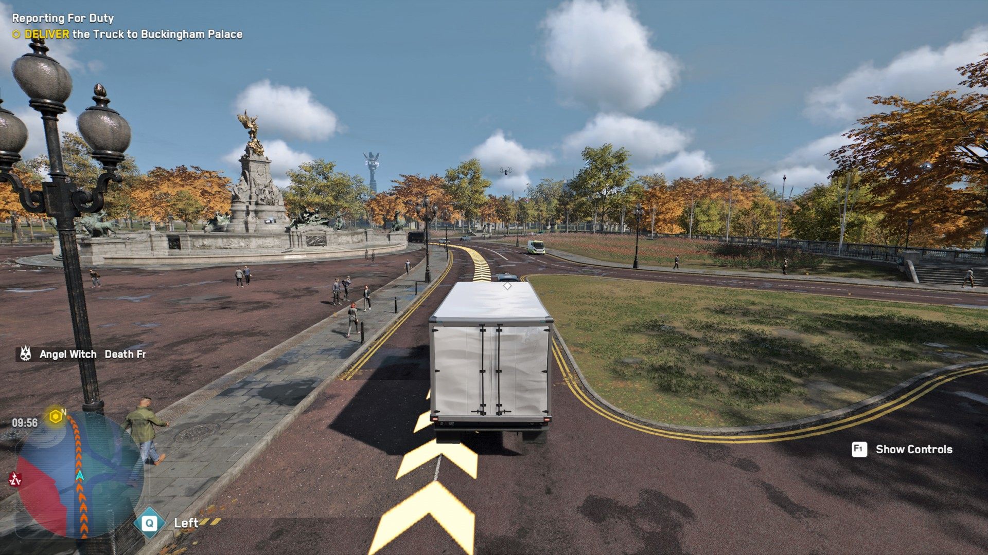 Get in the truck and drive it to the location marked on the map near Buckingham Palace.
