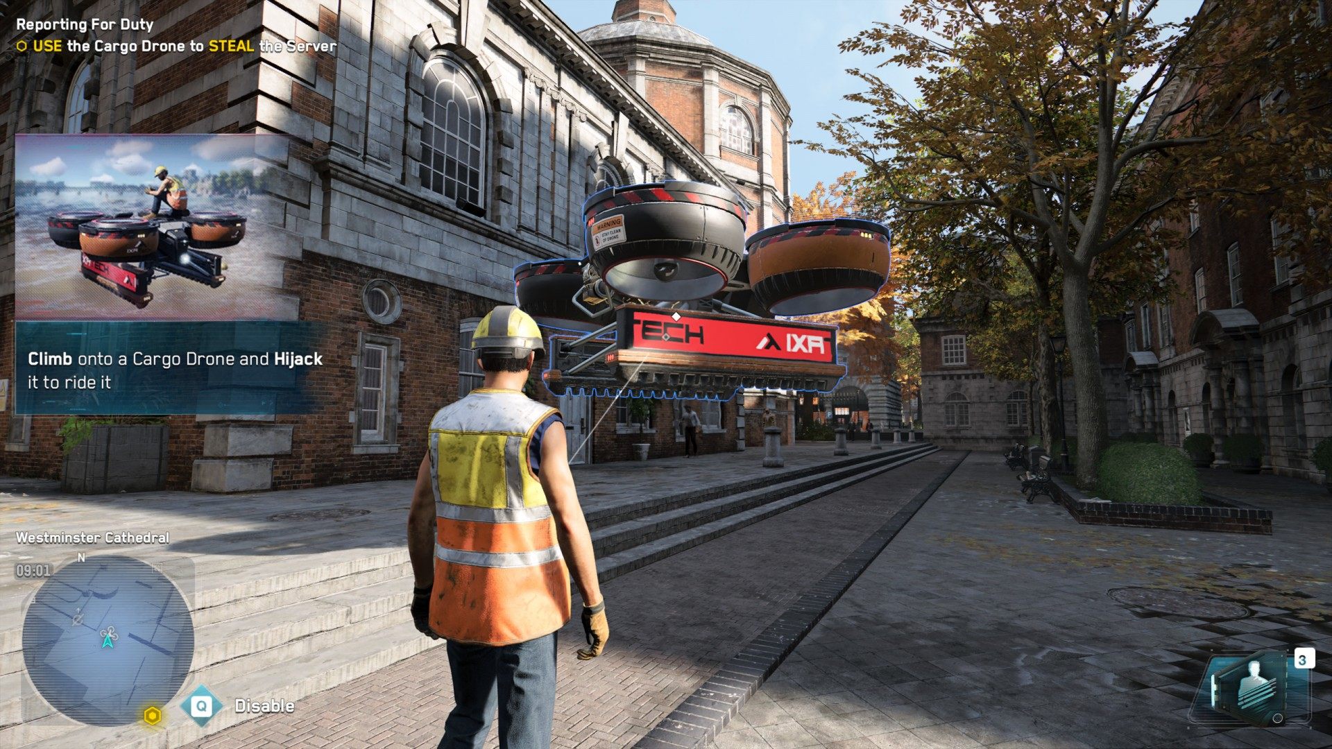 Having found the perfect person for the job, DedSec can steal the AR Reconstruction server. Go to SIRS HQ with the construction worker, use a cargo drone to steal server from the roof, and deliver it to your teammate's truck.