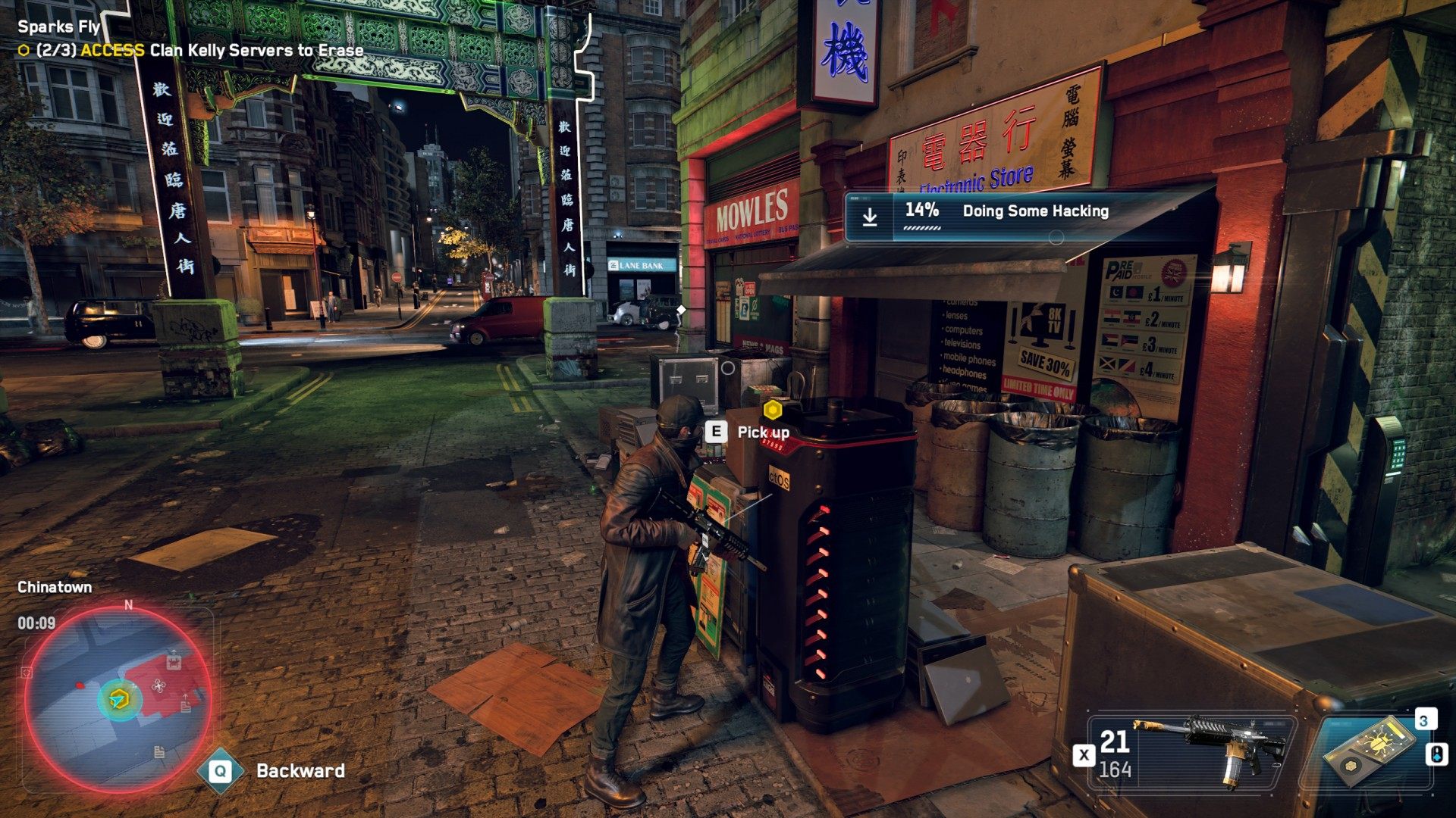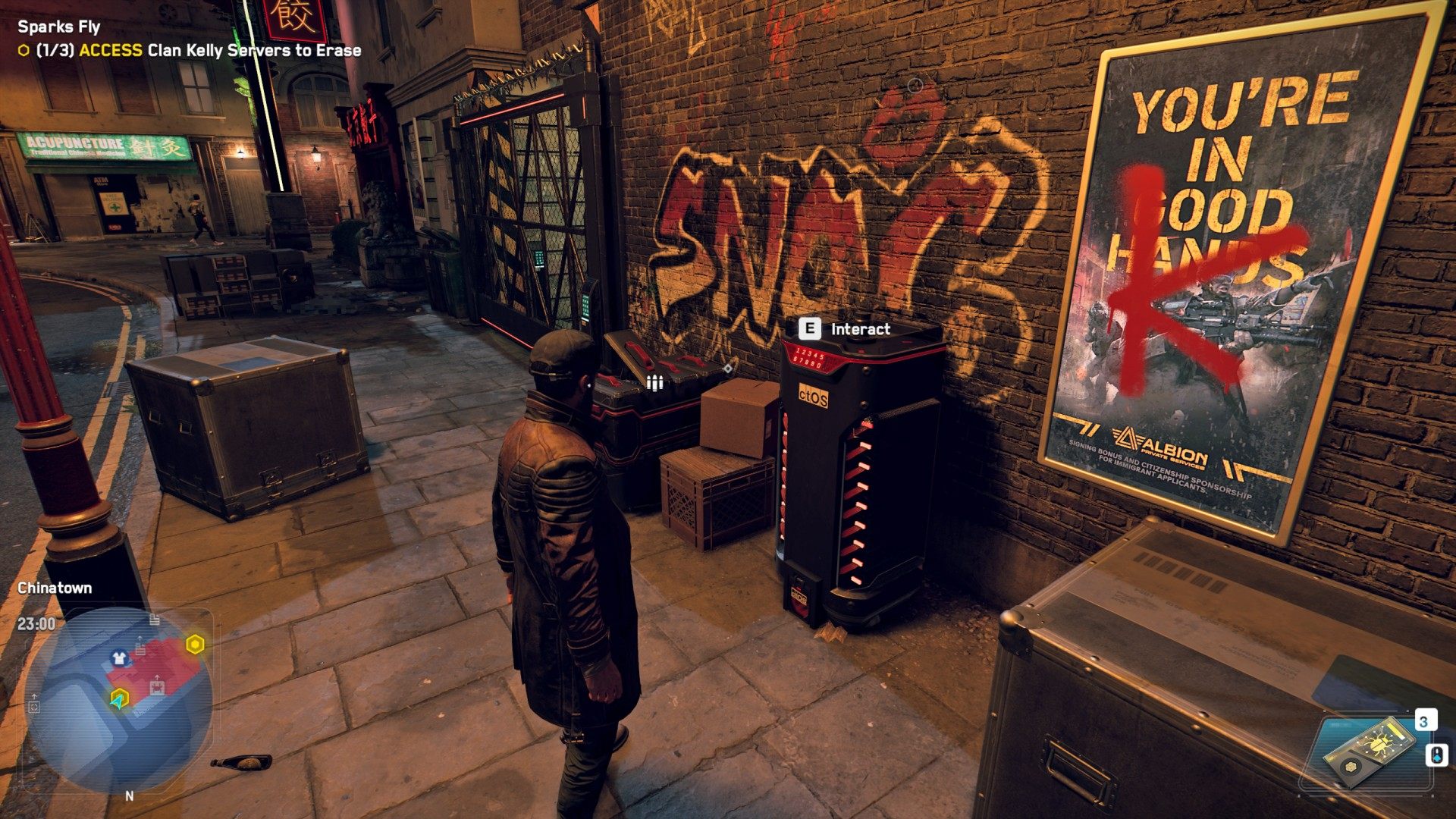 Clan Kelley has muscled in on Freddie's territory, and she's asked Aiden to smoke them out in style. Access the ctOS Hub in Chinatown to launch off their stockpile of illegal fireworks and draw them out of hiding.