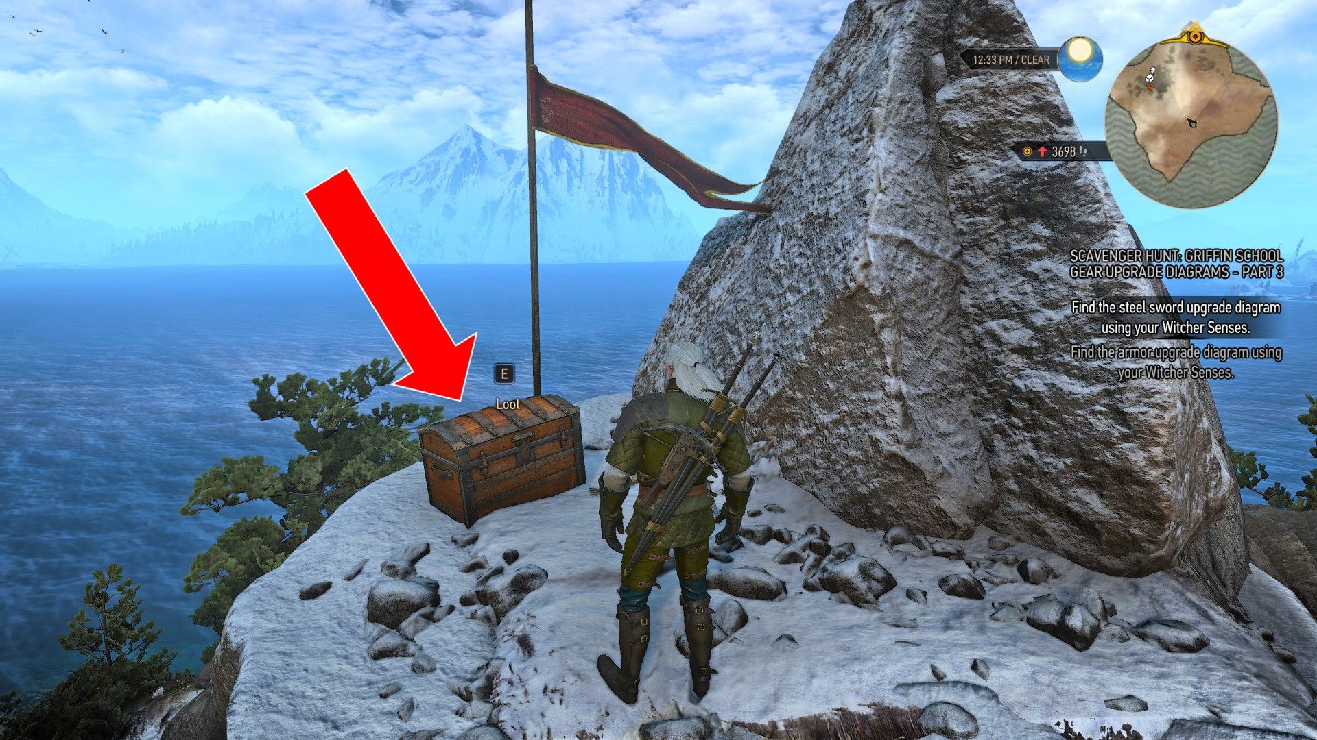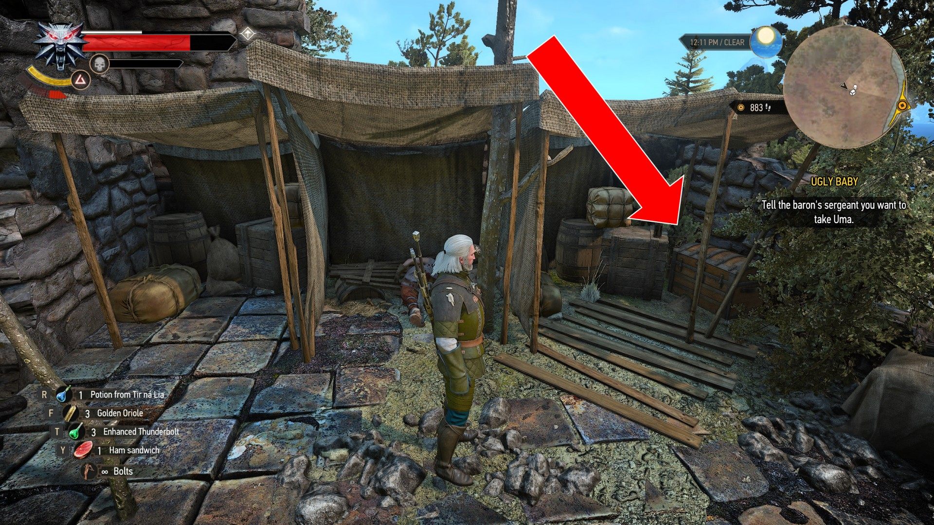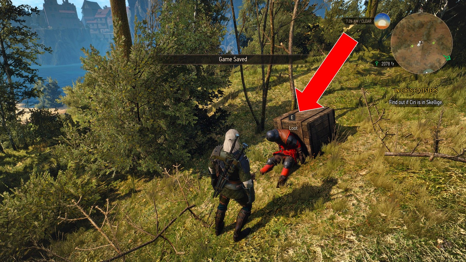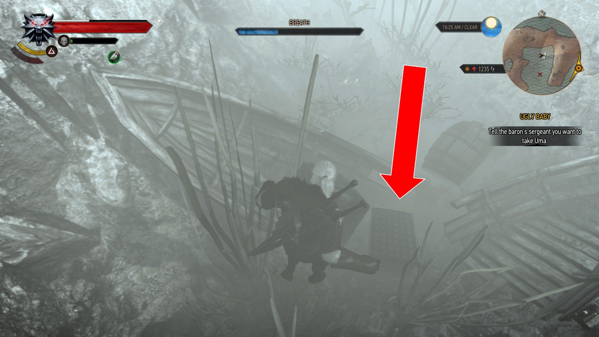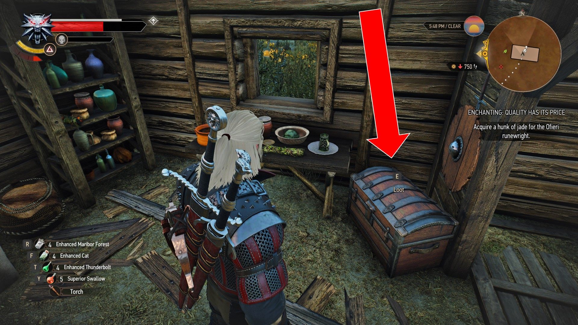 Guarded by 3 x Wraith (16) + Noonwraith (18). Mastercrafted saddle (+35 stamina), Relic. Use the aard sign to break the rocks blocking the entrance to the cave.