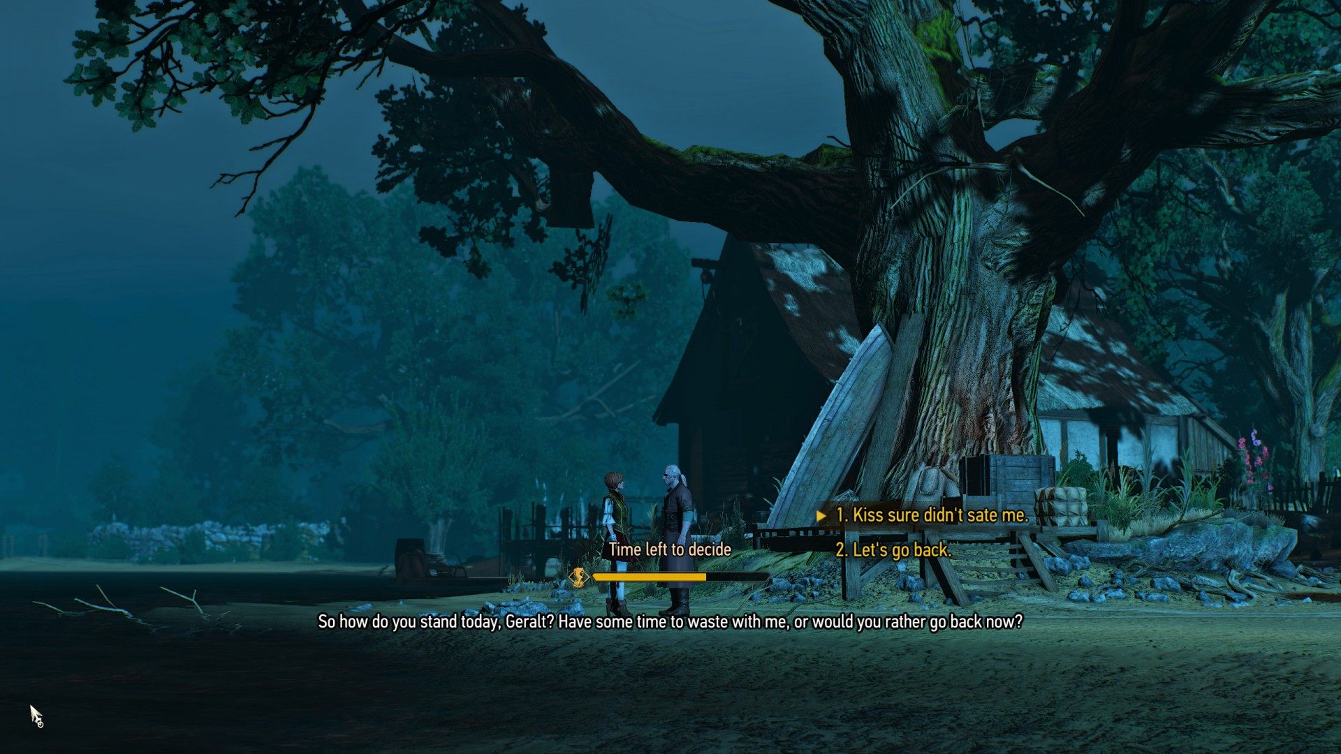 Geralt took Shani aside for a long walk by the river – and a heart-to-heart chat. This turn of events was the natural conclusion to a day full of emotions and discoveries – after all that, who wouldn't want to sit down in a quiet spot with an old friend and talk about past times? Shani and Geralt certainly did, and so they talked and laughed until night turned to day, then parted, each returning to his or her own life.