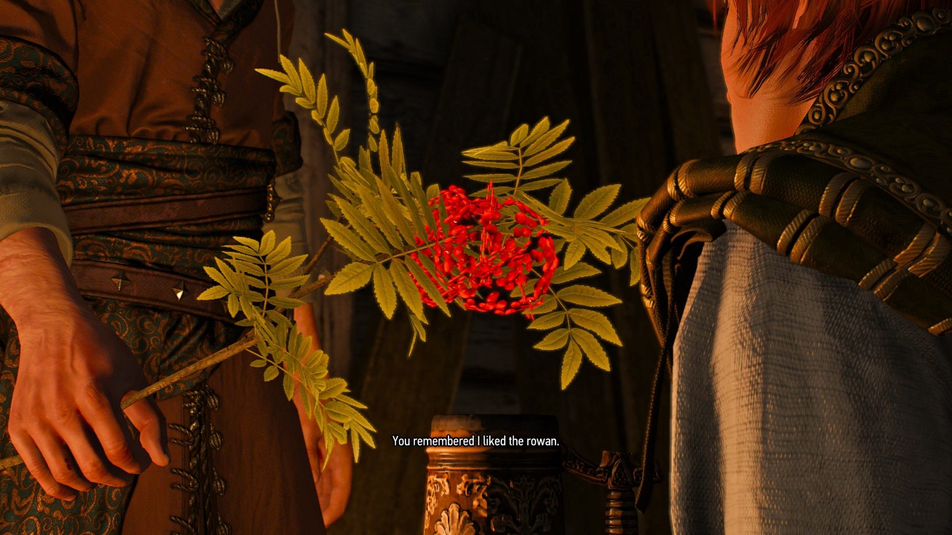 Geralt, remembering Shani's love for rowan blossoms, brought her a branch of them, which she delightedly plaited into her hair. Oh, if you'd only seen her then… She looked lovely, radiant, even.