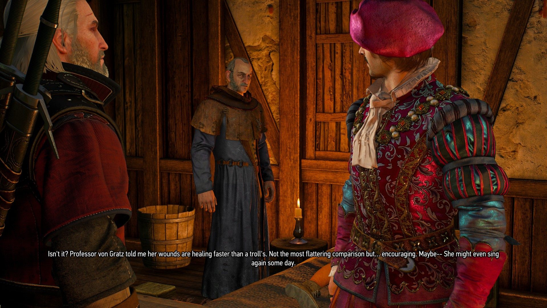 Geralt's investigation took him to Crippled Kate's, a pleasure house of questionable repute. It is there, according to the note left by the murderer in Patricia Vegelbud's body, that the fiend would take his next victim - a prostitute named Sweet Nettie.