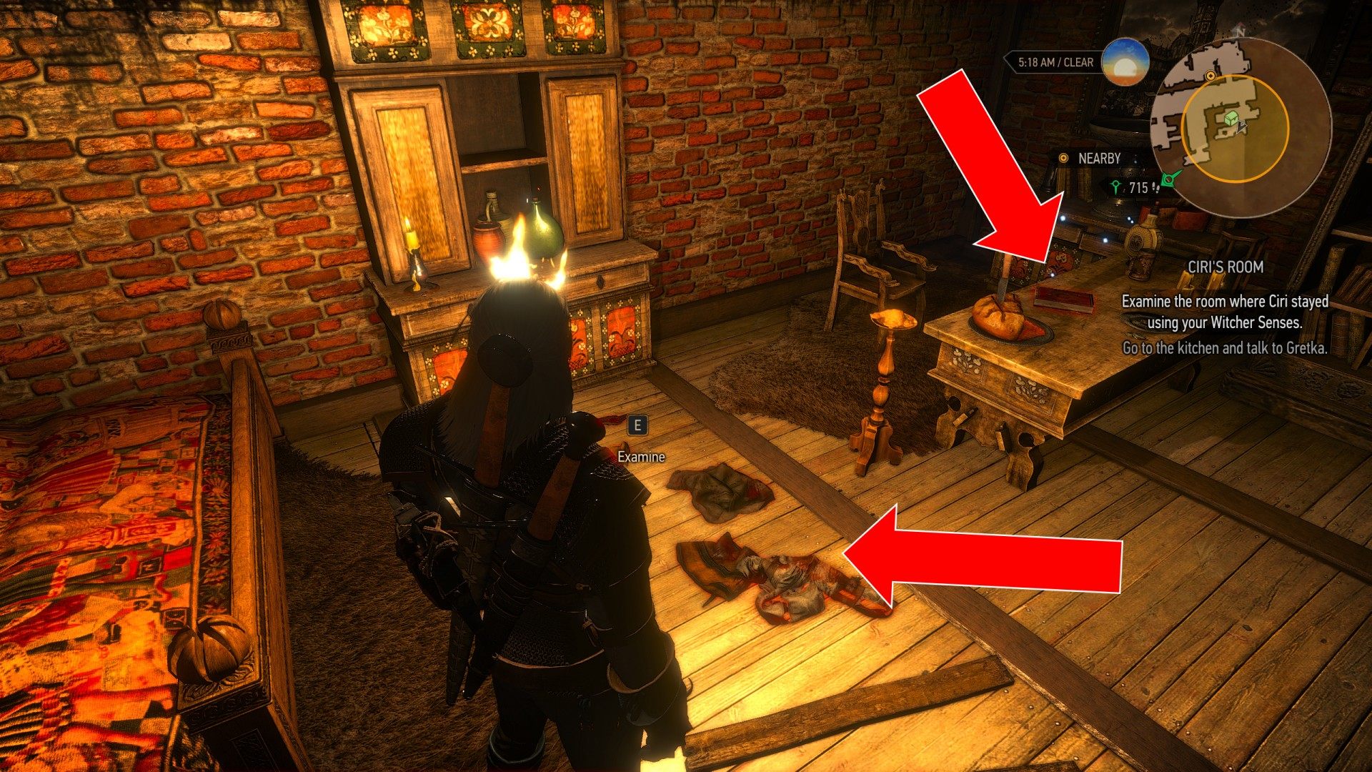 Having learned which room Ciri had stayed in during her time at Crow's Perch, Geralt, for whom any excuse to paw through others' possessions is a good one, decided to search it and see if she had left anything behind that might help him find her.