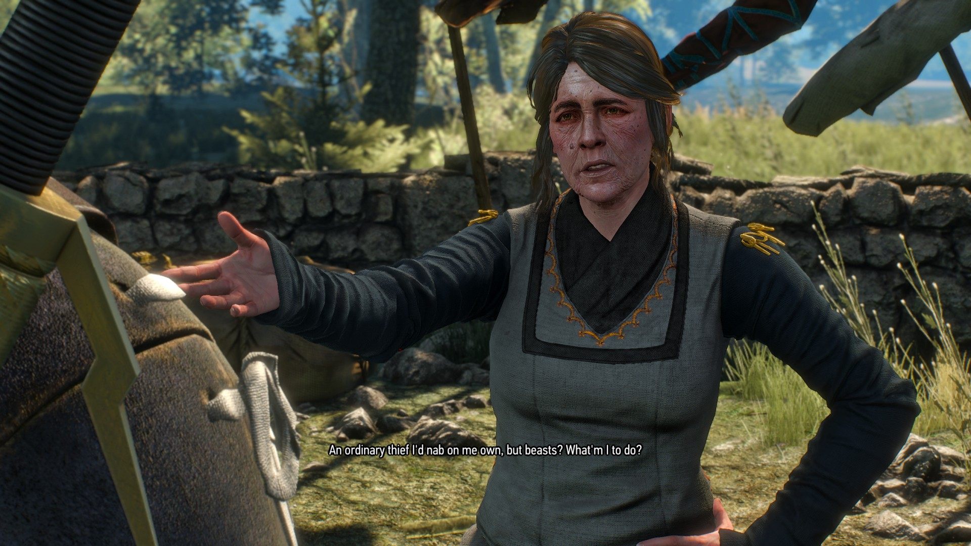 An old woman in Velen asked Geralt for an unusual favor. Some time ago her hens had gone missing from her hen house. Based on the tracks she had found, the woman suspected some two-legged creature with wolf-like paws was responsible. Geralt decided to investigate this mysterious being.